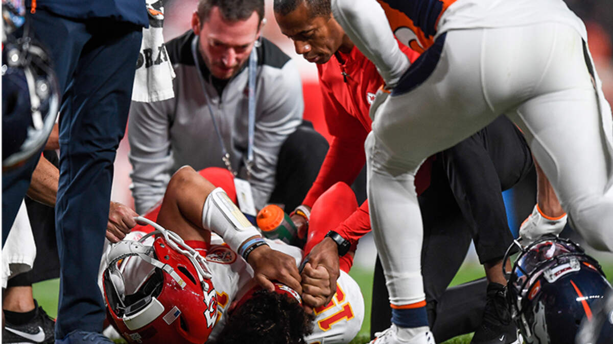 Kansas Kansas City Chiefs quarterback Patrick Mahomes suffered a right kneecap dislocation in the second quarter of Thursday night's game against the Denver Broncos. Mahomes, who has been battling an ankle injury, ran a QB sneak on fourth down and crumpled underneath the pile after getting the first down.