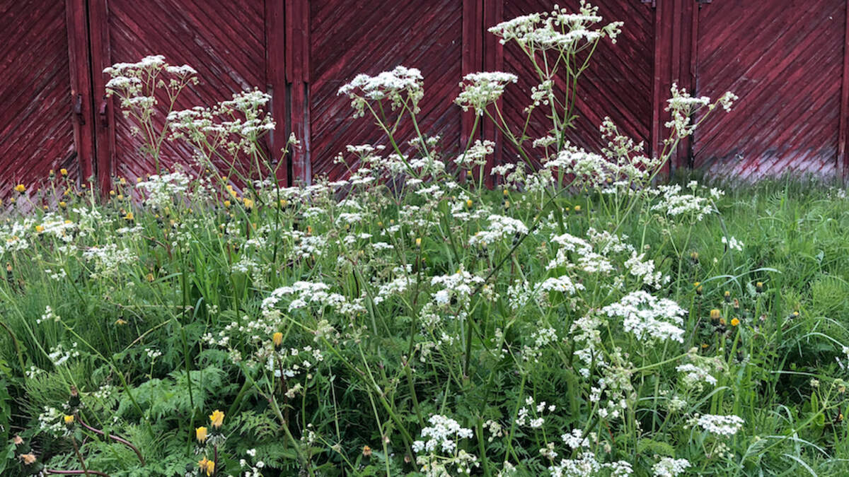 The plant looks like a giant Queen Anne's lace once it flowers and features a cluster of tiny white flowers at its top, according to Slack. The poison hemlock's stem is bigger and it's dotted with purple spots along the stock, which sets it apart from the Queen Anne's lace.