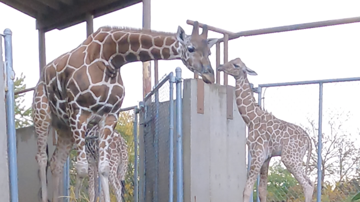 MINOT, ND – The Roosevelt Park Zoo family has grown by six feet! A healthy giraffe calf was born Wednesday to parents Kianga & Mashama; the 9th calf born to the pair. During a wellbaby exam Friday morning, the calf weighs 127 pounds and is about 6 feet tall. The gender of the calf is known and will be announced on Monday. Help us celebrate with a baby shower! RPZ is open Saturday & Sunday from 10-6. In-person and online we will be raising money to be invested in enrichment items for the new calf. Money will also be raised in a one-item auction: a gender reveal painting by our male giraffe Mashama. As an added human element to the celebration, bring a package of diapers and get admission to the zoo for the day at the reduced winter rate. The diaper collection will support the Community Leadership Institute. A previous CLI class supported our enrichment program at the zoo, we are excited to help to pay it forward. Roosevelt Park Zoo is a steering committee member of Giraffe SAFE; a Saving Animals From Extinction conservation program by the Association of Zoos and Aquariums. According to SAFE, there are fewer than 100,000 of the endangered giraffe remaining throughout Africa. The giraffe population is declining due to habitat loss, human population growth and poaching. AZA accredited zoos and their partners are working collectively through education, scientific research, field work, public awareness and action. Roosevelt Park Zoo has raised more than $50,000 for giraffe conservation. This has been made possible with the help of our community and zoo patrons who have participated in our giraffe experience over the past ten years since the Giraffe Feeding Station was built.